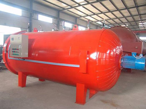 電加熱硫化罐通過活動接軌和接引小車將所需進(jìn)行加工的產(chǎn)品裝入硫化小車通過軌道和接引小車進(jìn)入硫化罐內(nèi),待其結(jié)束工作,再通過硫化小車把硫化產(chǎn)品運輸出來。